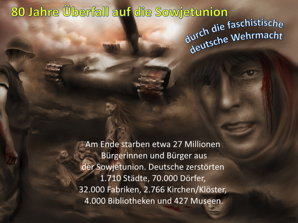Wir hoffen auch, dass in den postsowjetischen Ländern, in denen heute nicht die sowjetischen Befreier, sondern die SS-Veteranen und Nazi-Schergen geehrt werden, in denen die sowjetische Fahne untersagt ist und Nazi-Symbole hingegen erlaubt sind, ein Umdenken stattfindet.